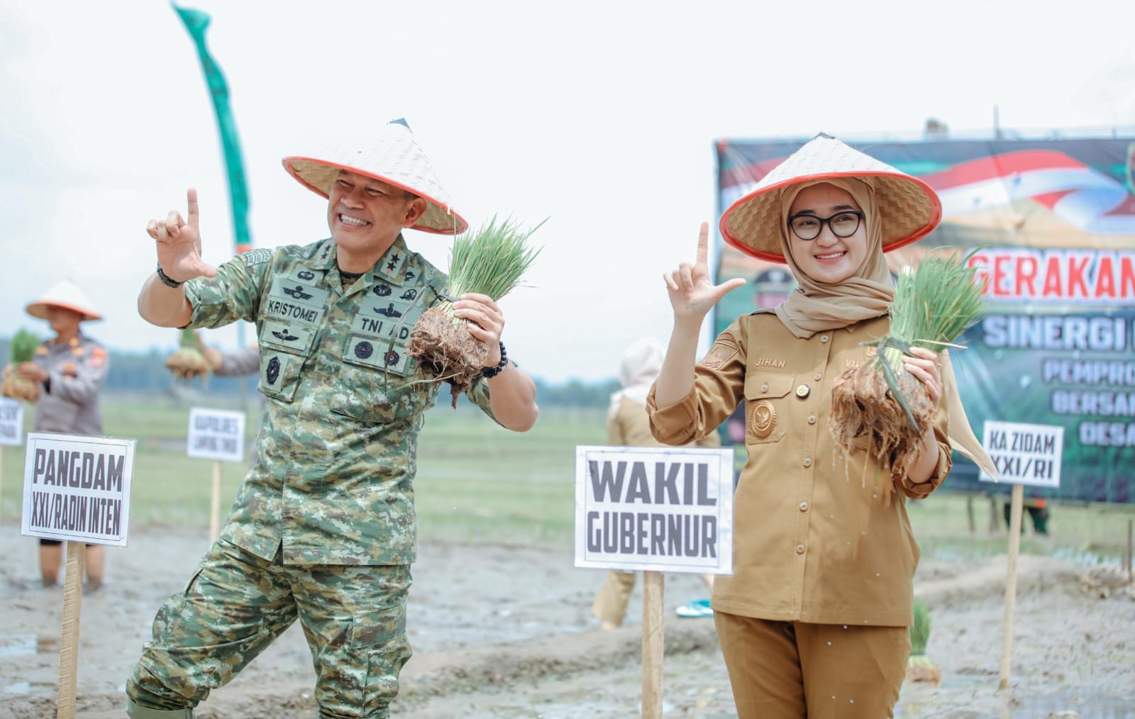 Wakil Gubernur Lampung Jihan Nurlela menghadiri langsung penanaman padi bersama Kodam XXI/Raden Inten dan Pemerintah Kabupaten Lampung Timur di Desa Braja Fajar, Kecamatan Way Jepara, Lampung Timur pada Selasa, (20/1/2026).