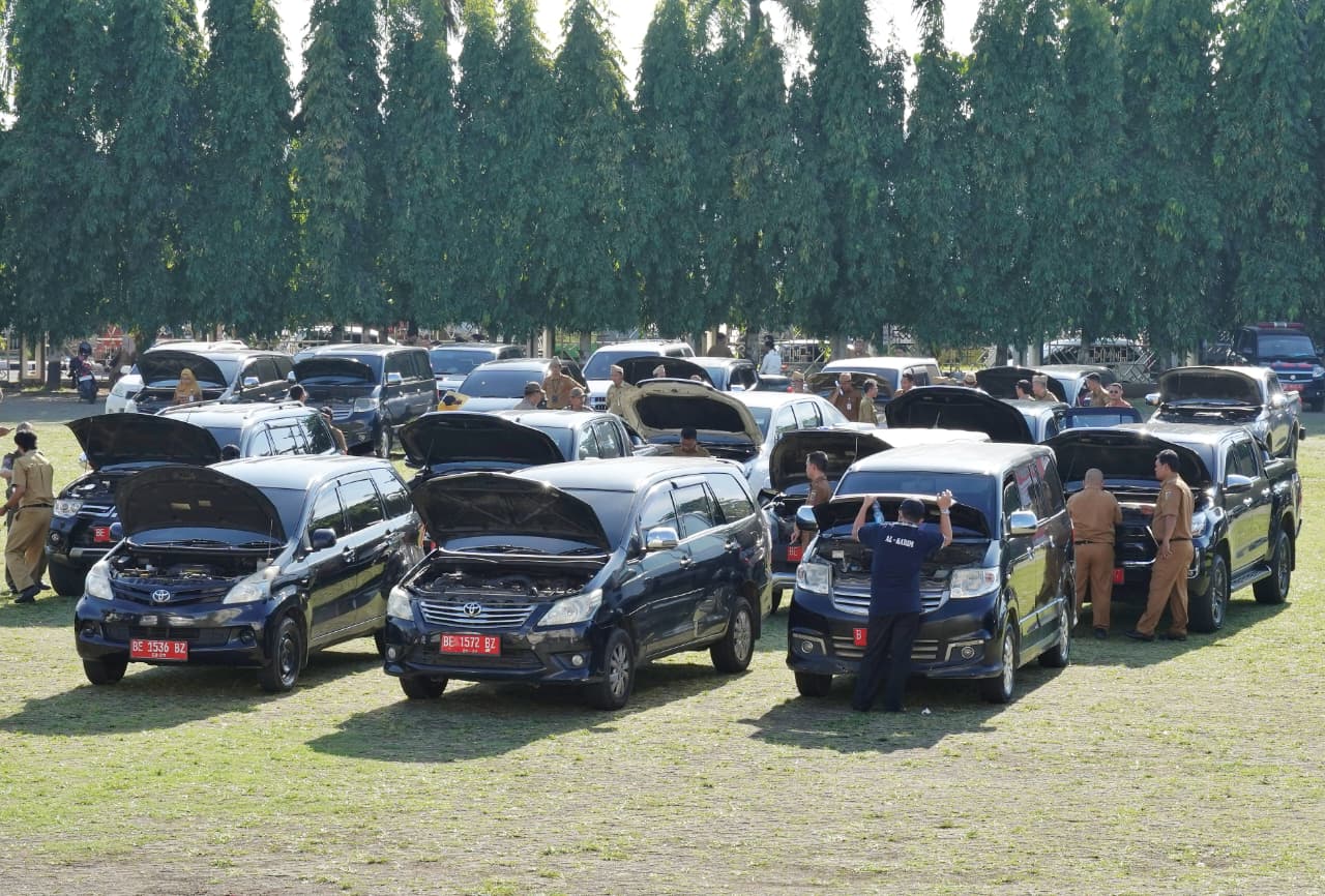 Pemeriksaan mobil dinas dilingkup Pemerintahan Provinsi Lampung. Dok: Diskominfotik Lampung.