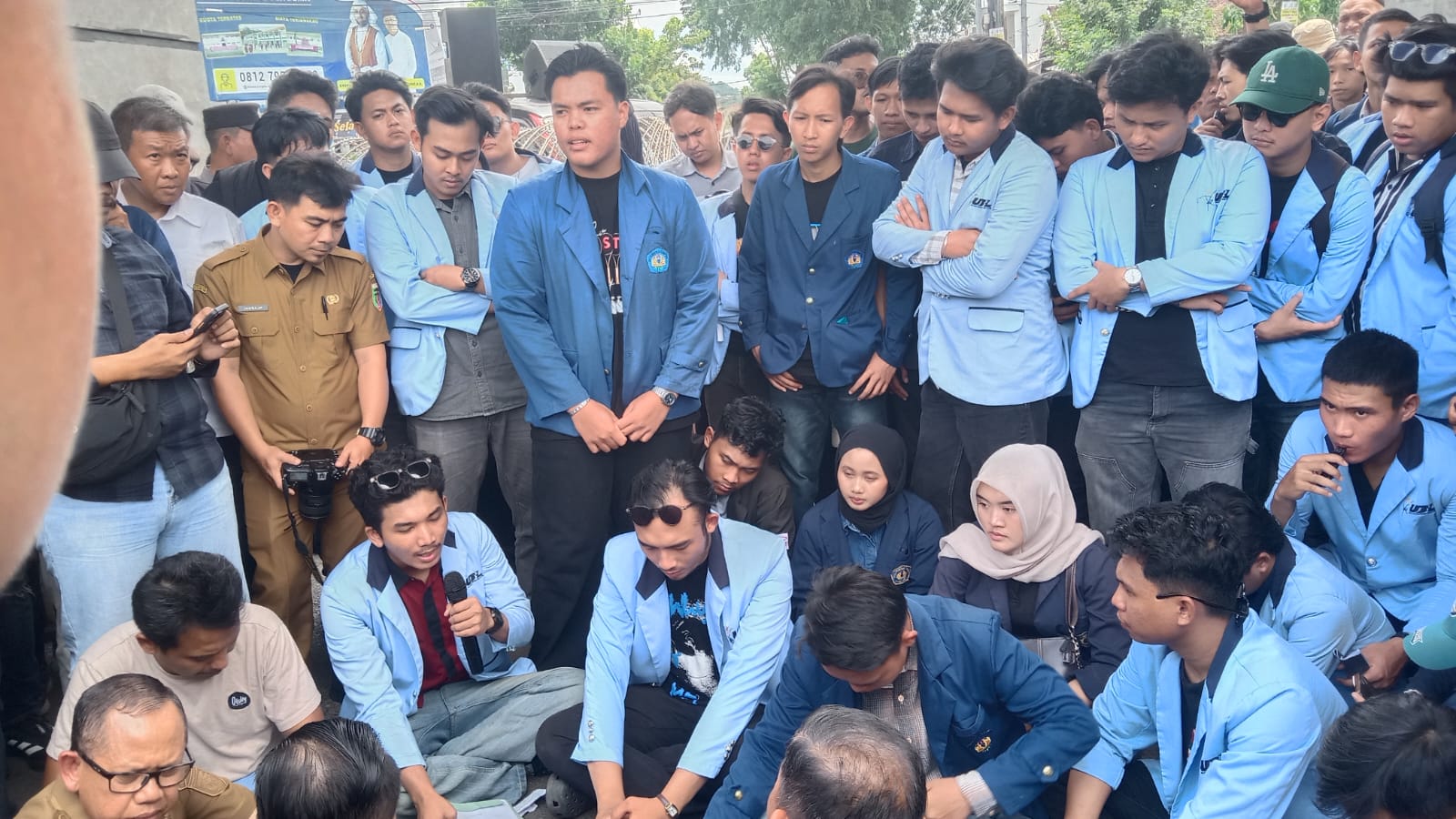 Di tengah aksi, suara mahasiswa terdengar lebih tajam dari biasanya.